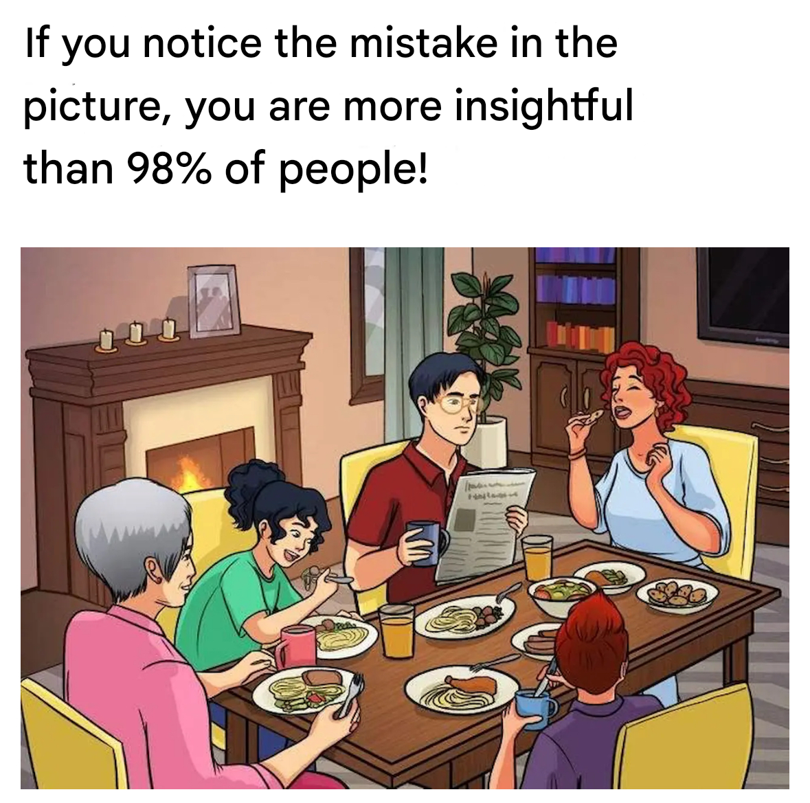 If you are attentive enough, you will see what is strange about the family dinner!