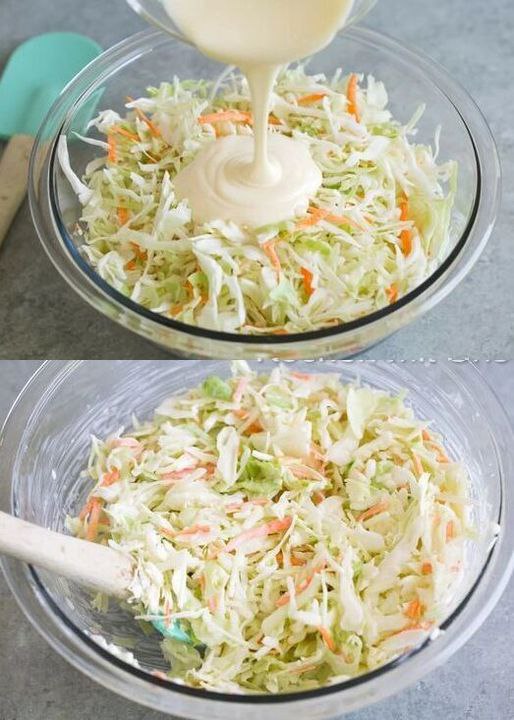 2. Then, place the cabbage, carrots, and all the remaining ingredients in a large bowl and mix well.