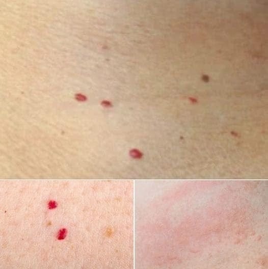The reason why red dots appear on the skin can be various, and while some of them go away on their own, some require a suitable treatment. Some of the most common reasons which lead to the red spots are allergic reactions, acne residual mark, vascular birthmarks, skin spots due to angiomas, protein overproduction, heat rash, insect bites, leaking capillaries, as well as autoimmune conditions. 1. Petechiae and Purpura These are tiny red dots that appear on the skin due to damaged blood vessels or capillaries. They can be caused by stress, coughing, or certain medications. Although they are usually harmless, they can sometimes indicate underlying platelet disorders.