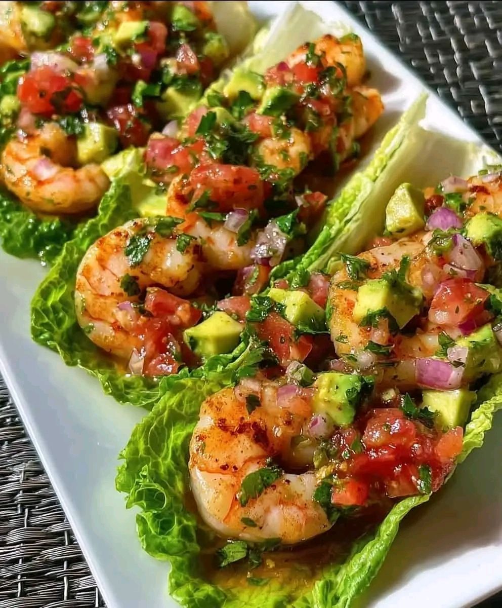 Lay out crisp romaine leaves and spoon the shrimp mixture generously into each one. These low-carb lettuce wraps are a total clean eating favorite and a fun easy entertaining appetizer.