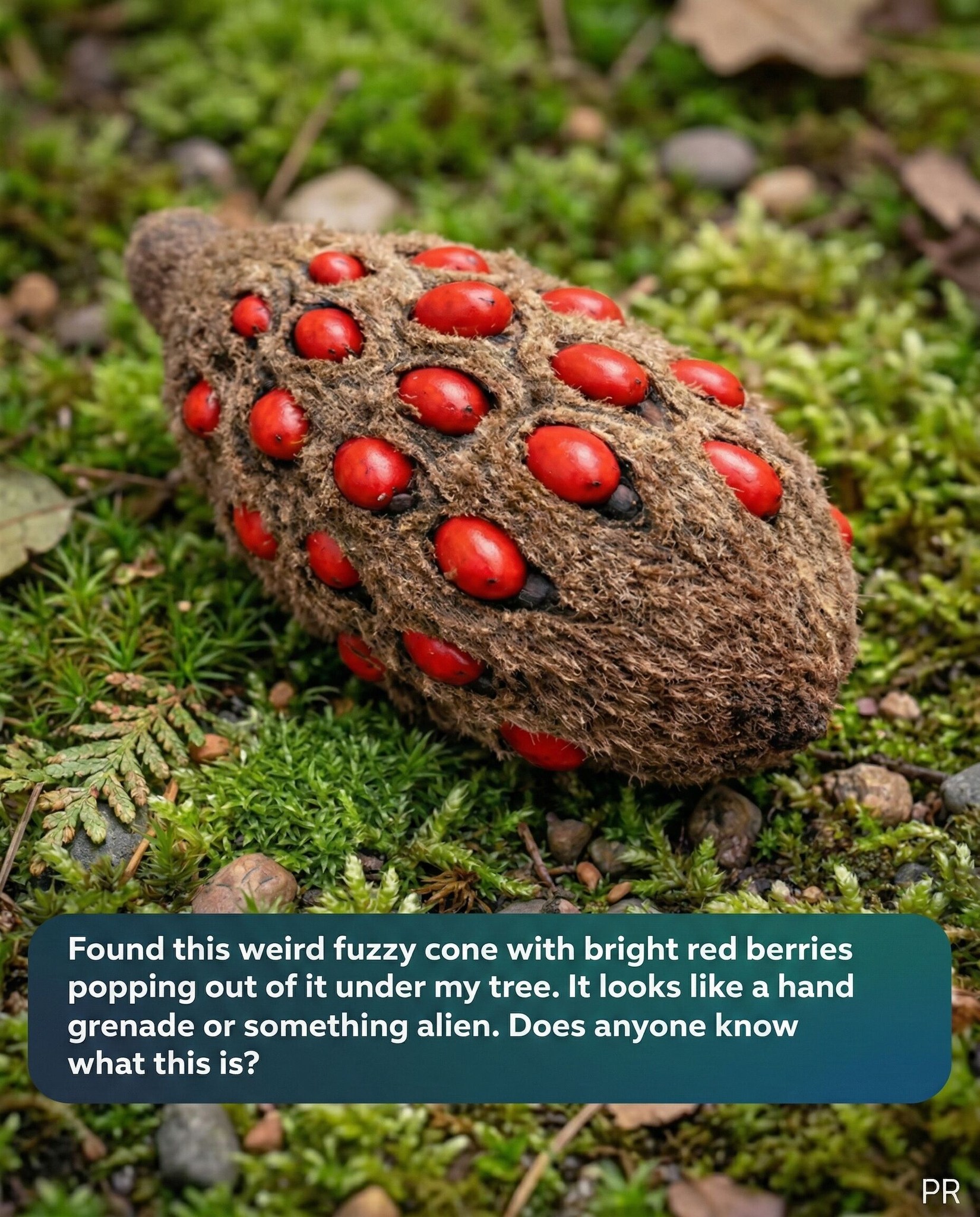Strange Fuzzy Cone with Bright Red Seeds Found in the Yard — Here’s What It Is